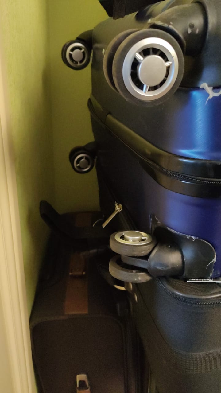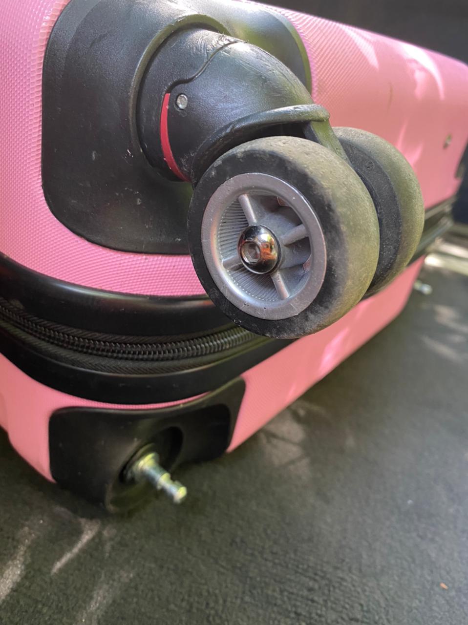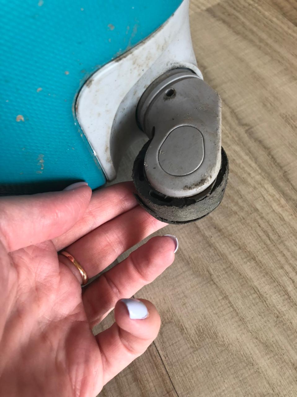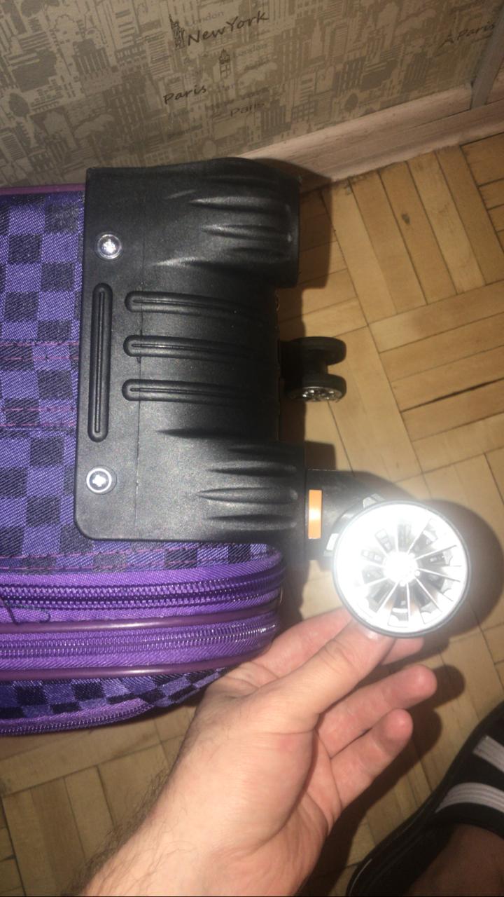 - У чемодана отвалилось колесо. Эта неисправность вызывается разрушением колесной втулки или в результате ослабления крепления к корпусу. Как вариант – истерлась рабочая поверхность.